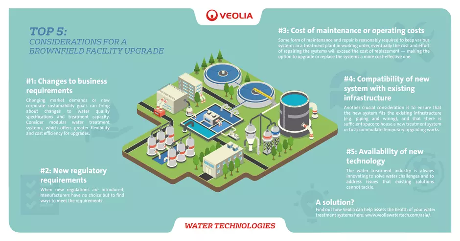 Here are the top five considerations for managers evaluating an upgrade for their brownfield water or wastewater treatment plant: