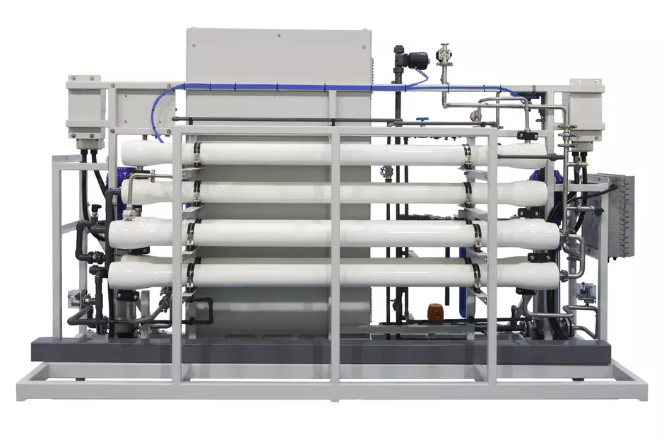 SENSA is a reverse osmosis (RO) system, where water gets purified through a membrane. This purification process is repeated twice in SENSA’s double-pass RO configuration to achieve higher water quality — removing more than 99% of salts and producing water with a conductivity as low as 5 µS/cm. With six skid-mounted units, it is a high-availability system with flow rates ranging from 1.4 to 10 m³/h depending on the inlet water quality.